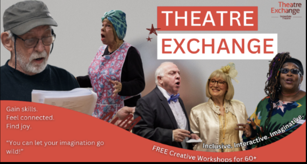 Theatre Exchange is Immediate Theatre’s creative group for anyone aged 60+, offering a welcoming space filled with games, improvisation, storytelling, and creativity. It’s a chance to discover your theatre‑making talents, meet new people, and enjoy a light‑hearted, supportive environment.